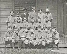The Harvard baseball team was one of the best in the country (coached in 1902 by Cy Young and Willie Keeler) and Matthews was the star shortstop for the team, lettering all four years (1902–1905). Matthews made an important contribution his first season by scoring the winning run in the final game of the series against Yale in front of 9,000 fans at the Polo Grounds in New York City.[5][6] He led the team in hitting his final three years (batting a high .400 and stealing 25 bases during his senior year) as the Harvard team won 78 games and lost 18 with him over that span.[7]