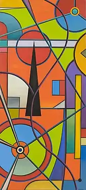 William Conger (born 1937) is a Chicago-based, American painter and educator, known for a dynamic, subjective style of abstraction descended from Kandinsky, which consciously employs illogical, illusionistic space and light and ambiguous forms that evoke metaphorical associations.[1][2] He is a member of the "Allusive Abstractionists," an informal group of Chicago painters self-named in 1981, whose paradoxical styles countered the reductive minimalism that dominated post-1960s art.[3] In 1982, critic Mary Mathews Gedo hailed them as "prescient prophets of the new style of abstraction" that flowered in the 1980s.[4] In his essay for Conger's fifty-year career retrospective, Donald Kuspit called Conger art-historically daring for forging a path of subjective abstraction after minimalism had allegedly purged painting of an inner life.[5] Despite being abstract, his work has a strong connection to Chicago's urban, lakeside geography and displays idiosyncratic variations of tendencies identified with Chicago Imagist art.[6] A hallmark of Conger's career has been his enduring capacity for improvisation and discovery within self-prescribed stylistic limits.[7][8]