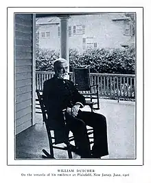 William Dutcher was born to Rev. Jacob Conklin and Margaretta Ayres Dutcher in Stelton, New Jersey. The family moved to Coxsackie and later Owasco where William studied for a few years. At the age of thirteen he began to work for a banker on Bond Street. He worked for some time near Springfield, Massachusetts on a farm but returned to New York to work with the Brooklyn Life Insurance Company and later the Prudential Insurance Company. On weekends and holidays he went out shooting birds and soon became interested in ornithology. Dutcher took a special interest in the Labrador duck and owned a specimen of the last individual and used it as an example for conservation measures.[1][2] He became a member of the newly founded American Ornithologists' Union. In 1887 he served as Treasurer for the AOU and held this position for sixteen years. He also chaired the committee on bird protection. Dutcher worked on the passing of the Lacey Act of 1900. He also worked with the US Department of Agriculture to establish Pelican Island as the first National Bird Reserve in 1903. Dutcher helped raise the funds for purchase of land and for supporting the pay of wardens.[3] In 1910, he attended the International Ornithological Congress at Berlin where he spoke on the rationale for international bird protection.