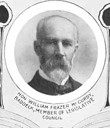 William Fraser McCurdy (December 5, 1844 – June 5, 1923) was a merchant and political figure in Nova Scotia, Canada. He represented Victoria County in the Nova Scotia House of Assembly from 1878 to 1886 as a Liberal member.