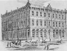 The H. Abraham & Son building for cotton factors and commission merchants on Gravier Street, designed by Fitzner and built in 1881; since demolished.