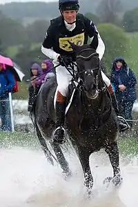 William Speed Lane Fox-Pitt MBE[1] (born 2 January 1969) is an English equestrian who competes in eventing. His career highlights include winning three Olympic medals in the team event, with silver in 2004 and 2012, and bronze in 2008.[2] At the World Equestrian Games, he won team gold and individual silver in 2010, and team silver and individual bronze in 2014. He also won World team medals in 2002 and 2006. At the European Championships, he has won six team gold medals, as well as Individual silver in 1997 and 2005, and Individual bronze in 2013. He is the recordman CCI*****'s winner with 14 grand slam titles. In 2011, he became the first rider to win five different five-star events,[3] having won the Burghley Horse Trials a record six times (1994, 2002, 2005, 2007, 2008 and 2011), Rolex Kentucky three times (2010, 2012, 2014), Stars of Pau twice (2011, 2013), the Badminton Horse Trials twice (2004, 2015), and the Luhmühlen Horse Trials once (2008). A serious fall in 2015 left him in a coma for two weeks, but he came back to make the British eventing team and attend the 2016 Summer Olympics. He was appointed Member of the Order of the British Empire (MBE) in the 2018 Birthday Honours.[4]