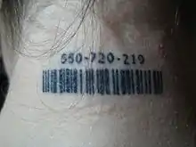 A neck barcode tattoo, the sole element of Gibson's Alien 3 script which was included in the final cut of the film.[17]