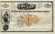 Share of the New York and Harlem Rail Road Company, issued 31 October 1873, signed by William Henry Vanderbilt as president