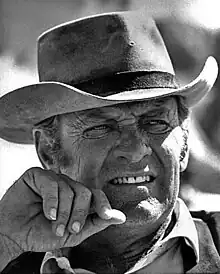 In 1969, Holden made a comeback when he starred in director Sam Peckinpah's graphically violent Western The Wild Bunch,[3] winning much acclaim. Also in 1969, Holden starred in director Terence Young's family film L'Arbre de Noël, co-starring Italian actress Virna Lisi and French actor Bourvil, based on the novel of the same name by Michel Bataille. This film was originally released in the United States as The Christmas Tree and on home video as When Wolves Cry.[31] Holden made a Western with Ryan O'Neal and Blake Edwards, Wild Rovers (1971). It was not particularly successful. Neither was The Revengers (1972), another Western.