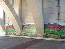 Oversized coursing on the bridge with a contemporary Indigenous mural, 2014