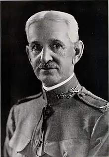 From 1915 to 1916, Nicholson planned and organized the instruction of military-minded civilians as commander of the Citizens' Military Training Camp at Fort Sheridan, Illinois.[38] In 1916 and 1917, he commanded first the 5th Cavalry Regiment, and later the 11th Cavalry Regiment, during their participation in the Pancho Villa Expedition.[39][40] In the spring of 1917, Nicholson supervised cavalry instruction for noncommissioned officer schools, officer candidate schools, and Organized Reserve Corps schools in Texas.[41] In the summer of 1917, Nicholson commanded the Officer Candidate School at Fort Sheridan.[42]