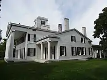 In 1839, Strong was noted for constructing a sprawling grand mansion covering 11,634 feet of living space.[5] The property called Rose Hill Mansion was given to Robert Swan in 1850.[4] A contemporaneous newspaper report cited that the property, which was designated a national historic landmark, was sold to Swan's father, who gave it to him as a wedding present.[6]