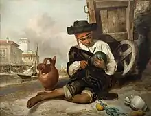 He also was influenced by works by the Spanish artist Bartolomé Estéban Murillo (1617–1682). Murillo’s street children can be easily recognised in Keeling’s depictions of poor children, both British and Spanish. His ‘Spanish Boy’ exhibited in Manchester in 1876, was described as "a very good example of the careful and accurate method pursued by the artist. He is thoroughly conscientious in all his professional work."