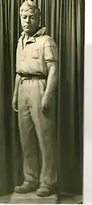 Lamb's most productive period was from 1924 to 1933. As a result of an education on strictly traditional lines, he developed a style of modelling that was classically accurate, but which expressed the character and background of his subject.[1] Although he modelled Queen Elizabeth II as Princess Elizabeth aged six, in 1932,[2] he generally eschewed the rich, the famous and the heroic. Instead Lamb settled permanently in his native Montrose, Angus, Scotland, and sculpted the inhabitants of the town and neighbourhood, concentrating upon working class models, especially from the fishing community.[3]
