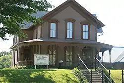 The William Manatt House, also known as the Brooklyn Historical Museum, is a historic dwelling located in Brooklyn, Iowa, United States. It is associated with the settlement of the town. Manatt and his father Robert moved from Holmes County, Ohio and settled in Poweshiek County in 1848. The farmstead they developed eventually became the city of Brooklyn.[2] His father laid out most of the town in 1855. William sold property to the Mississippi and Missouri Railroad for a $1, and it reached Brooklyn in 1862. He granted land to the Chicago, Rock Island and Pacific Railroad in 1869. Manatt owned several businesses in town, which were run by various family members, and he owned an estate that grew to 1,500 acres (610 ha) of land.[2] He had this house built in 1869 on property that included a large barn, carriage house and pasture land. Manatt died in the house in 1906. His widow Roxann and two of his daughters, Thursia and Nellie, lived here until they died or moved out late in life. His youngest son Coe bought the house in the mid-1950s when Nellie moved out, and donated it to the city of Brooklyn before he died in 1962. It housed the Brooklyn Public Library until 1999, and since then the Brooklyn Historical Museum.[3] The two-story frame structure features Italianate elements, especially the tall, segmentally arched windows and hooded crowns. Dental molding is found on the cornice. The porch that encircles half of the house is not original. The house was listed on the National Register of Historic Places in 1997.[1]