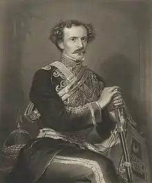 Mayne joined the East India Company's Military Seminary, Addiscombe, on 5 February 1836, and passed his examination on 12 June. Appointed ensign on 15 December 1837, he did duty with the 4th Bengal Native Infantry, and was afterwards posted to the 49th Bengal Native Infantry at Neemuch. On 29 November 1838 he was specially appointed to serve with the 37th Bengal Infantry in the Army of the Indus. Two companies of the 27th Bengal Infantry and ten of the 37th Bengal Infantry were attached to Sir Robert Sale's force. Mayne was appointed detachment-adjutant to these companies, and much distinguished himself at the unsuccessful attack on the fort of Julgar on 3 October 1840. He became lieutenant on 2 November 1841. As lieutenant in command of a rissalah (squadron) of the 2nd Shah Soojah's Irregular Cavalry, or Anderson's Horse, he repeatedly signalised himself during the defence, by Sir Robert Sale, of Jellalabad, and subsequently with the Quartermaster-General's department under General Pollock, and at the capture of Istalif on 29 September 1842. He was selected by Lord Ellenborough for the adjutancy of the body-guard, as "among the officers most distinguished in the late war".[lower-alpha 2] While second in command of the bodyguard, he had a horse killed under him at Maharajpore on 31 December 1843. He was not engaged in the Sikh wars, being in command of the 5th Irregular Horse at Bhowapur during the first, and commandant of Lord Dalhousie's bodyguard at the time of the second war.[1]
