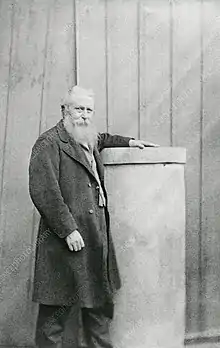 William Radcliffe Birt FRAS (1804–1881) was an English amateur astronomer in the 19th century. This photograph, showing Birt with the pier of Victoria Park Observatory in London, was taken in October 1867.