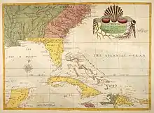 In late 1758 Shirley was commissioned as Governor of the Bahamas.[145] This was followed in early 1759 with a promotion to lieutenant general. After a lengthy passage, Shirley arrived in the Bahamas on 31 December, when his ship was wrecked on a reef in the islands. He eventually arrived without incident or injury at Nassau and assumed the reins of power.[146][Notes 1] His rule was quiet; dealing with smugglers in the islands was the major issue demanding the governor's attention. In part to combat illicit trade he lobbied the London government that Nassau be established as a free port. Although he was influential in this regard, Nassau did not receive this status until after he left office.[147] He also oversaw renovations to the governor's mansion, and promoted the construction of churches with funding from the Society for the Propagation of the Gospel.[148] In 1765, after his wife's death, he took his children to England so that they could be properly cared for.[149] He returned to the islands, where he had to deal with protests of the recently enacted Stamp Act. When he proposed the use of the stamps on official documents to the local assembly, the reaction in opposition was so visceral that Shirley dissolved the body.[150] By the time the next assembly met, the Stamp Act had been repealed.[151]
