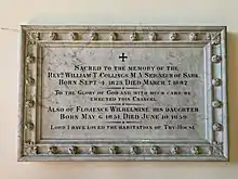 Collings married his cousin Louisa, an amateur lichenologist and collector,[5] on 15 June 1847.[6] The ceremony was conducted by her brother, William Collings Lukis, at St Saviour's Church.[7] They had four daughters and two sons,[6] William Frederick (1852–1927) and Henry de Vic (1855–1872). William Frederick, the heir apparent, was the exact opposite of his father, and the two never got along. Collings was succeeded by his son upon his death on 7 March 1882.[2][3] He was outlived by his wife, elder son and eldest daughter, Mary Edmeades.[6]