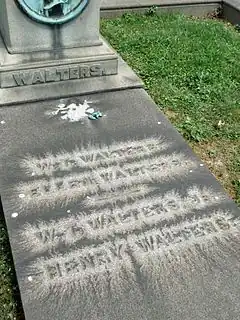 - ↑ "MR. WALTERS LAID AT REST Buried in Greenmount Cemetery — Friends From Many Parts of the Country Present at the Services" (PDF). The New York Times. November 25, 1894. Retrieved February 26, 2019.