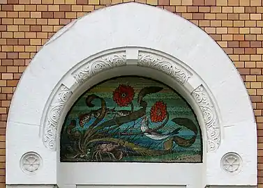 Walcot's mosaic, signed W.W., adorns the List House in Glazovsky Lane, built by Lev Kekushev.