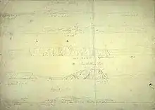 Very few of Westall's drawings were lost in the wreck, though some were water-damaged, and incurred further damage when Flinders' second lieutenant and brother Samuel Flinders allowed the sheep to run over them while Westall had them laid out drying in the sun.[18] Whilst marooned on the sandbank, Westall produced a watercolour entitled View of Wreck Reef Bank Taken at Low Water: Terra Australia; this was Westall's final drawing of the voyage.[17]
