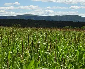 The name "Williamsburg Mountain" is a local reference, after the town of Williamsburg, and does not appear on federal maps. The mountain is also referred to as "The Loop" because of its unique shape when viewed from the air. (This is not to be confused with Loop Mountain 13 miles (21 km) to the southwest, near Hollidaysburg.) The summit ridge rises to an elevation of 2,350 feet (720 m) above sea level, 1,500 feet (457 m) above Williamsburg and the Frankstown Branch of the Juniata River.