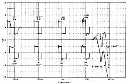 The first attempts to build the Williamson amplifier revealed its tendency to oscillate due to very narrow phase margin. Astor and Langford-Smith, who gave the Williamson excellent ratings,[48] reported that "for fairly large outputs at low frequencies a high frequency oscillation about 60 kC/s [kHz] would commence and be accompanied by a pulsed output of some other frequency".[74] The Australians, armed with first-class test equipment,[lower-alpha 13] suppressed the 60 kHz oscillation with small capacitors on screen grids, but could not identify and suppress the cause of "some other" oscillations.[74] Later, technicians of the United States Naval Research Laboratory examined seven different commercially available Williamson amplifiers, and found that all of them oscillated at infrasonic frequencies of 2...3 Hz.[75] Replacement of output transformers affected stability only at audio and ultrasonic frequencies.[75] The best transformers displayed perfectly flat frequency response from 10 to 100,000 Hz, but were also prone to infrasonic "breathing".[75] The worst transformers displayed prominent ultrasonic resonances that, however, did not cause sustained oscillations. Some "ringed" at relatively low frequencies of 30 to 50 kHz, others extended into 500...700 kHz range.[76]