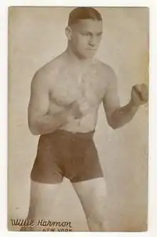 Willie Harmon, (born April 20, 1899), was an American boxer in the welterweight division. Harmon was a top welterweight contender for a number of years in the mid-1920s. He was ranked as the #6 welterweight in the world for 1925 by The Ring magazine.[1]
