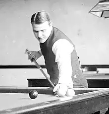 Hoppe was born in Cornwall on Hudson, New York, on October 11, 1887. He won 51 world titles between 1906 and 1952,[4] in three forms of carom billiards: three-cushion, (four sub-disciplines of) balkline and one-cushion caroms.[5] He died on February 1, 1959, in Miami, Florida.[6] He is buried in Whitemarsh Cemetery in Ambler, Pa.