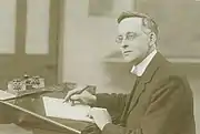 His first novel Windyridge was written as a series of weekly chapters, in the winter of early 1911, to entertain his wife and two friends, the Bolton sisters, whose parents and third sister had all recently died. He quotes himself as saying "I tell you what I'll do, I'll write a story and read each chapter to you as I go along, week by week. It may help to keep us from brooding".[1]: 98 The story is set in the village of Hawksworth near Baildon. He completed the tale in early 1912, having paused in his writing over the summer, and was persuaded to submit it for publication. He agreed to send it to just one publishing house, and chose this by writing on slips of paper the names of three established houses and the novice publisher Herbert Jenkins. It was this last slip which he selected, and Jenkins agreed to publish the book, as his firm's first publication.[1]: 101–2