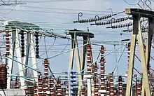 The output from the Willington Power Stations was fed into the 132,000 volt grid system (Nos. 1, 3 and 4 Units). Over these two transmission systems power was delivered to the surrounding area, and to a large extent to the South of England for use in the areas of Greater London and Bristol. The stations were privatised and sold to National Power in the early 1990s. Willington A closed in May 1995 and the B Station followed in 1999.[2] Although most of the stations were demolished at the turn of the millennium, the five cooling towers continue to dominate the skyline of the local area.[4] The site was earmarked for a large residential development, but the application was rejected and in 2011 permission was granted for a new power station to be built on the site.[5][6]
