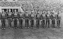 ![]() Willy Holzmüller (fourth from left) with the East Germany national team in 1957 | |||
