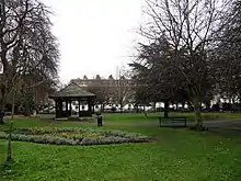 Flowers were planted and seating installed, together with the late 19th century pavilion or shelter that can still be seen today. In the gardens is a drinking fountain with the remains of a dedication inscription for the public garden. There are some notable trees including numerous small ornamental trees and conifers.[13]