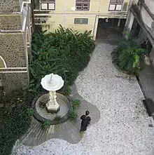 The white marble courtyard fountain is renaissance revival fountain based on one of the famous designs of the famous Italian sculptor Gianlo Renzo Bernini. The fountain is a 3-piece sculptor and is a garden ornament fountain, an order from the catalogue, which was a typical feature in the 19th century. The sculpture depicts the scroll motifs and the long tresses of hair representing the water and river sea nymphs. Fish motifs can also be seen in the hands of the sea nymphs.[12]