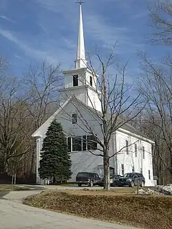 Windham Village is a dispersed rural settlement, extending along Windham Hill Road between Harrington Road and Stone Bridge Road. The focal point of the village is the Congregational Church, located at the junction with Harrington Road, which was built in 1802 and given Greek Revival styling in 1825. There are twelve other primary buildings, of which ten are historically significant, in an area of about 45 acres (18 ha). All of these are residences, typically 1-1/2 or 2+1⁄2 stories in height, with wood-frame construction and either vernacular Greek or Gothic Revival style. Most were built before 1858—there are only a few 20th century houses in the area, and they are sympathetic in style and scale to the older buildings.[2]