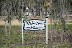 ![]() Windsor Park sign, among the indigenous live oak trees and Spanish moss | |