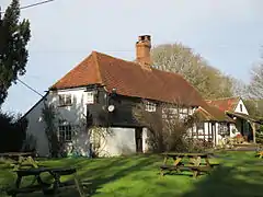 At Wyndham, usually called Wineham in the 20th century perhaps by assimilation to neighbouring Twineham, the houses are strung out on both sides of the road but mostly on the west, those on the east being in Twineham parish.[1] Wyndham hospital, founded in the 13th century, may have been near that road 0.25 miles (0.40 km) north of Frylands Lane, where the site was recorded in the 1870s, or the same stretch further north, where hospital field lies behind the Royal Oak; no trace of the building has been found.[1] The hospital had a church and a graveyard, and was presumably the place in Wyndham where an inquisition was held in about 1300.[1]