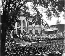 The president told his listeners that, "No more fitting memorial could be erected to the memory of the men who fought, than a hall such as this—a hall beautiful because of the uses to which it is consecrated." Afterward, he raised a flag which had been flown on the Milwaukee-class vessel USS Winnebago during the Civil War.