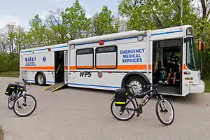 WEMS has 25 ambulances, 1 Major Incident Response Vehicle (MIRV),[15] 1 bariatric ambulance,[16] 4 District Chiefs-Paramedic Operations, and 1 Platoon Chief- Paramedic Operations. Since 2002, WEMS operates 1 PACER Unit (Paramedics Active in Community Education and Response), which is a pair of specially outfitted paramedics deployed on bicycles during the summer months (weather and staffing permitting).[17] District Chiefs-Paramedic Operations use chase vehicles to assist paramedics on ambulances with pediatric and high-acuity calls and review paramedics' performance for continuous quality improvement.[14] The Platoon Chief-Paramedic Operations oversees all EMS operations and, if required, can respond in an Incident Command role.