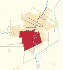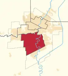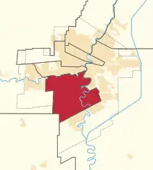 Location of Winnipeg South within Winnipeg between the 1933 and 1947 representation orders