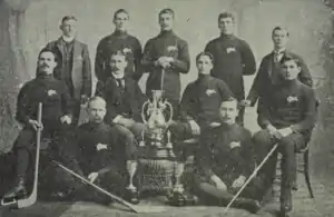 The Winnipeg Victorias were a former amateur senior-level men's amateur ice hockey team in Winnipeg, Manitoba, organized in 1889.[1] They played in the Manitoba Hockey Association (MHA) in the late 19th and early 20th centuries. The Victorias won the Stanley Cup in February 1896, 1901 and January 1902 while losing the Cup in December 1896, February 1899, February 1900, March 1902, and February 1903. After the Stanley Cup became the professional championship, the Victorias continued in senior-level amateur play, winning the Allan Cup in 1911 and 1912.