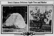 Around 1918, a descendant of one of the pioneer families donated $20,000 for the construction of a shelter house. The shelter house was not built until 1957 and it cost $28,000 to construct the house out of limestone. Another limestone building was built in 1961 to store park equipment and restrooms. Winterset City Park also has a log cabin that contains two rooms. To the north of the cabin, there is a six-ton granite boulder that commemorates the discovery of the Red Delicious apple in Madison County in 1872.[1] The boulder was erected in 1922.[1]