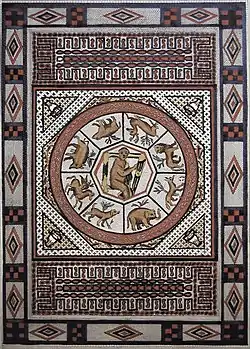 ![]() The Orpheus mosaic from Winterton villa | |