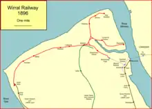 In fact the Woodchurch line was not built; but on 14 August 1884 the company were authorised to build from Bidston to New Brighton.[2][3]