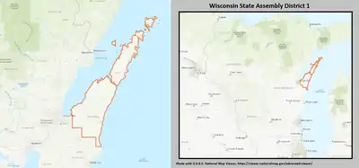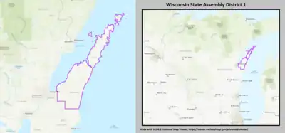 - ↑ "Wisconsin Legislative Districts - Assembly District 1 Boundaries". Wisconsin Legislature. Retrieved February 7, 2021.