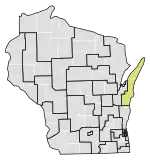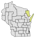 The 1st Senate District of Wisconsin is one of 33 districts in the Wisconsin State Senate.[2] Located in northeast Wisconsin, the district comprises all of Door and Kewaunee counties, as well as most of northern Manitowoc County, much of south and east Brown County, northern Calumet County, and part of southwest Outagamie County. It includes the city of Two Rivers, most of the city of De Pere, and parts of the cities of Appleton and Menasha. The district does not contain, but is adjacent to, the Green Bay area.[3]