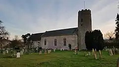The parish church is dedicated to Saint Andrew. It is one of around 40 round-tower churches in Suffolk[lower-alpha 1] and dates from the 11th century. The tower has a floor partly dated to the 12th century, one of the oldest recorded church tower floors in the United Kingdom. The church was built as a chapel to Rumburgh Priory. Two doors and the tower arch are the remaining elements of Norman architecture. The church is a Grade I listed building.[2][14][15][16]