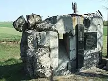Wizna is known as the Polish Thermopylae. It was the sitwe of the Battle of Wizna (September 7–10, 1939) during the initial stages of the German Invasion of Poland which started World War II. The Polish defense force consisted of approximately 700 soldiers and 20 officers armed with six pieces of heavy artillery. They held a fortified territory against a vastly larger invading force at great cost of lives, before being annihilated with no known survivors.[6] Heavy German assault on Polish bunkers continued for three days and was successfully repelled until the early morning of September 10. The German engineers with the help of tanks and explosives managed to destroy all but two Polish bunkers. Both of them were located in the centre of Góra Strękowa, and although much of the crew was wounded or incapacitated and most of the machine guns destroyed, continued resisting till the end. It is said that General Heinz Guderian threatened the Polish commander, Captain Władysław Raginis with he shooting POWs if the remaining force did not surrender. The symbol of Polish will, Władysław Raginis, committed honorable suicide by throwing himself on a grenade. German losses are not known. In his diaries Heinz Guderian noted that 900 German soldiers were killed in action, although that number is probably underrated. It is certain, however, that the Wehrmacht lost at least 10 tanks and several other AFVs in the struggle.[7] Afterwards, the settlement was handed over by Germany to the Soviet Union in accordance with the Molotov–Ribbentrop Pact. It was under Soviet occupation until 1941, when it passed under German occupation following the Operation Barbarossa.