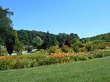 In the Spring 2020, 5-hectare Polish Millennial Garden created since 2017, was incorporated into the garden grounds. It is a presentation of Polish bredders’ achievements in creation of new plant varieties. Collection consists both of modern and forgotten pre-war cultivars.[3] Didactic boards describing the history of Polish breeding are exposed in five resting sheds. Additionally, Millennial Garden is a place of ex-situ conservation of endangered, threatened and protected plant species . Established conservation sites include species such as: Rosa gallica, Linum austracum, Allium ursinum, Dictamnus albus, Gladiolus palustris.