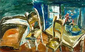 His sensitivity gave him 'the ability to animate and give inner life to objects normally considered prosaic because of their familiarity'.[3][8] Freda Kibel was using Interior with bed as an example, in which distortions of perspective are reminiscent of Van Gogh.[3] His skin tones are reminiscent of those of Renoir.[3]