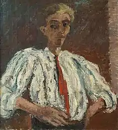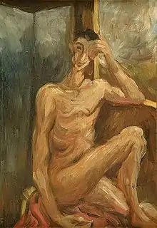An antique dealer introduced him to the portrait painter Edmund Pick-Morino. Pick-Morino found Kibel a patron, a rich banker, and allowed him to draw and paint his models, some of whom were society ladies, wearing masks. He appears to have come into contact with the work of Oskar Kokoschka.[1] However, his impoverished existence soon wore on him and, since he could not travel to Paris without papers, he was persuaded by Pick-Morino to go to Palestine.[2]