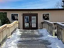 ![]() The Visitor's Center entrance at Wolf Park. | |