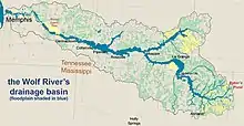 Wolf River is a 105-mile-long (169 km)[2] alluvial stream in western Tennessee and northern Mississippi, whose confluence with the Mississippi River was the site of various Chickasaw, French, Spanish and American communities and forts that eventually became Memphis, Tennessee. The Wolf River is estimated to be about 12,000 years old, formed by Midwestern glacier runoff carving the region's soft alluvial soil. It is one of many rivers in West Tennessee and Mississippi that prompted the Chickasaw to call the region "the land that leaks."